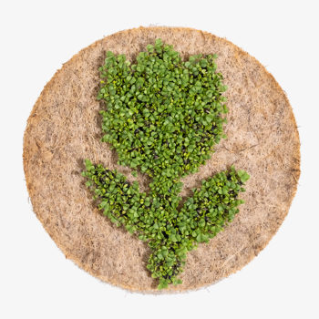Shamrock made from plant seeds applied to eco-friendly natural fibre pads.