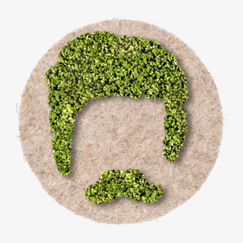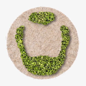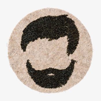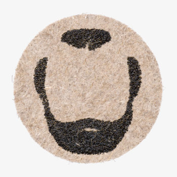 Mustache made from plant seeds applied to eco-friendly natural fibre pads.